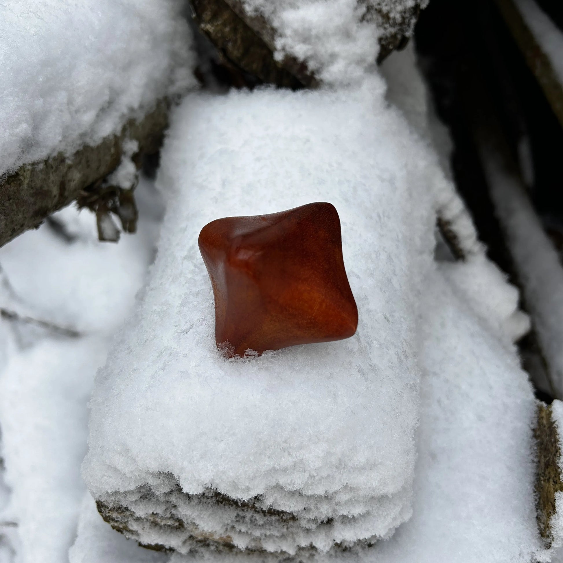 Die Akupressur Kugel aus Rosenholz fühlt sich angenehm in der Hand an.